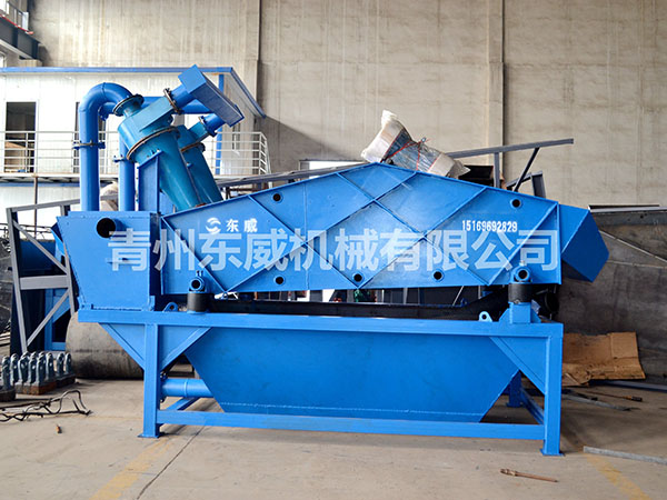 目前現有的洗沙生產線上,絕大部分采用濕法生產工藝,不論采用何種形式的洗砂機,其大的缺點就是細沙流失嚴重,嚴重影響沙子的級配,造成級配不合理,細度模數偏粗,大大降低了機制砂的產品質量。過多的細沙排放,還會造成環境污染。為解決上述問題,青州東威機械技術部門潛心研發了細沙回收機(細砂回收機),該細沙回收系統吸收國外先進技術,結合本土砂粉實際情況而設計的細沙回收設備。細沙回收機廣泛應用于洗沙場、砂石骨料加工系統、玻璃原材料加工系統、人工制沙生產線、選煤廠粗煤泥的回收以及環保工程(泥漿凈化)等,可有效解決細沙回收問題。
