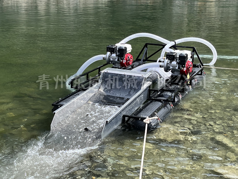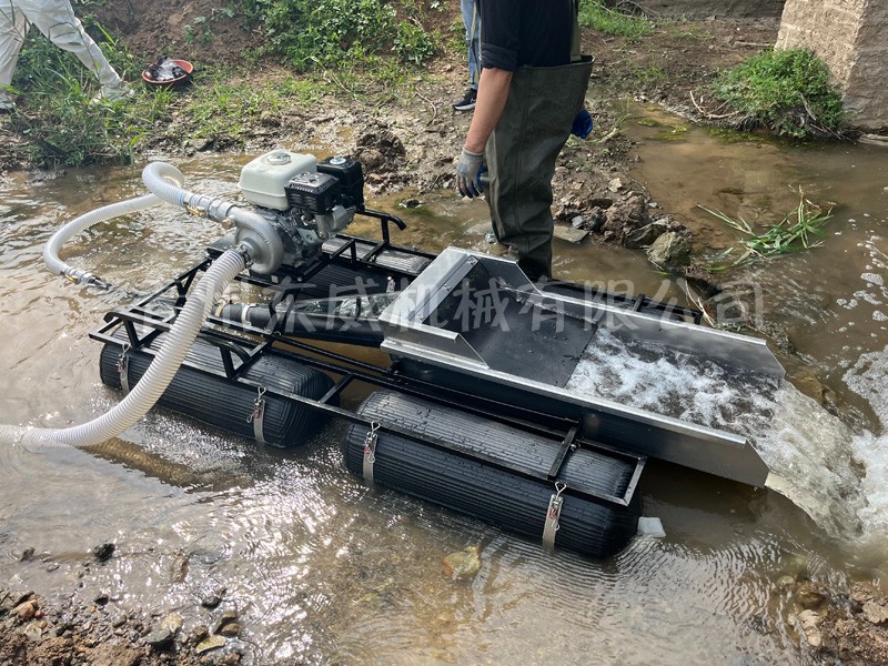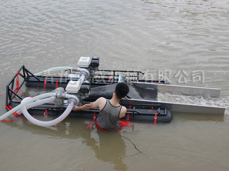該設備抽沙系統采用新型結構,原料抽取過程中物料不流經泵組,不用考慮泵和葉輪的磨損;沙金重選裝置為我公司專門研發的橡膠選金墊,沙金提取效率高,可對毛細金、片狀金進行回收;適用于中小型礦場、河道、小溪淘金、探礦作業;
