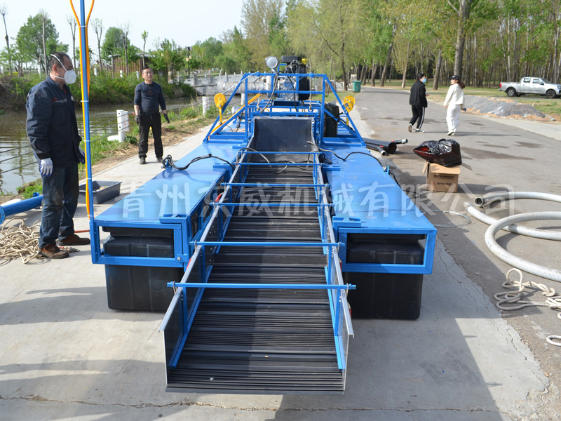 虹吸式淘金船是由機器、高壓水泵、浮體、射流嘴、管路、選礦溜槽等構成,具有體積小、輕量化、便于拆裝運輸等特點,是沙金采選行業內投資少、見效快的新選擇;可選裝空壓機系統,潛入水下進行探礦、選礦操作。