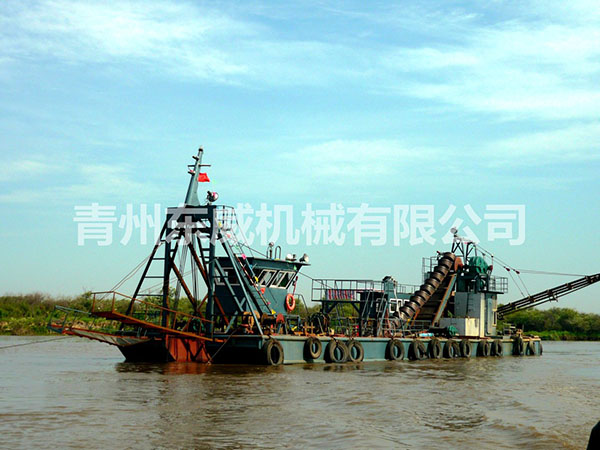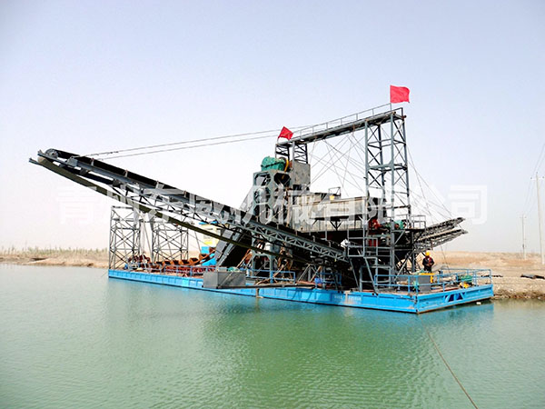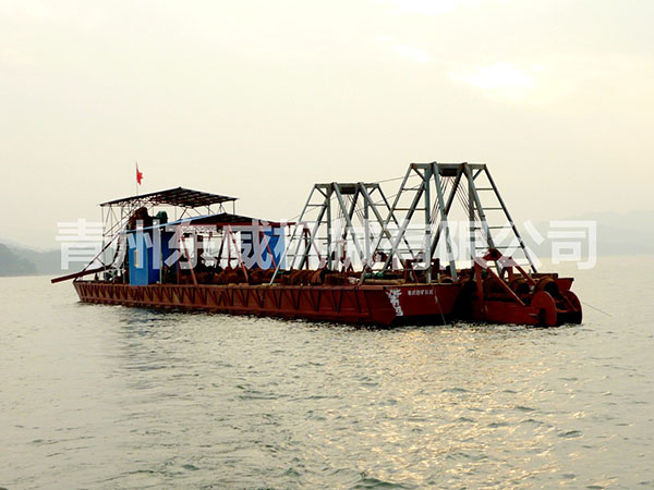 鏈斗式挖沙船可根據客戶性能要求及工礦作業特點設計制造。物料挖掘出來并由輸送機或輸送泵輸送至岸邊、運沙船的功能;浮體采用橫骨架式分體箱形結構,轉運時可拆裝后裝車。裝有定位設備、鏈斗挖掘裝置、橋架升降裝置及皮帶輸送機等。水下桿是由安裝在浮體上的絞車實現升降,砂石料通過鏈斗裝置挖掘上來,由輸送機或輸送泵輸送到岸上或運沙船。