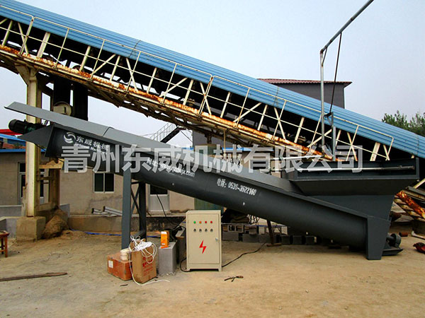 4.分離效果好、能力高,采用全新的內、外螺旋(變徑)篩分技術,不僅分離效果好,分離能力也很高,產品滾筒直徑1.4米,一般產品為0.9米左右;設計分離能力40噸/小時,一般產品為不超過20噸/小時;(分離能力主要考慮當洗站時裝載機的一次性集中投放干料考慮)。