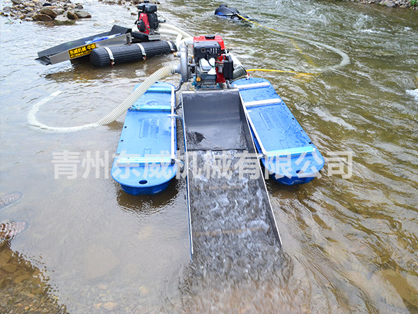 微型淘金船,又叫虹吸式淘金船,體積小重量輕,便于拆裝、運(yùn)輸、攜帶、操作,投資少見(jiàn)益快;